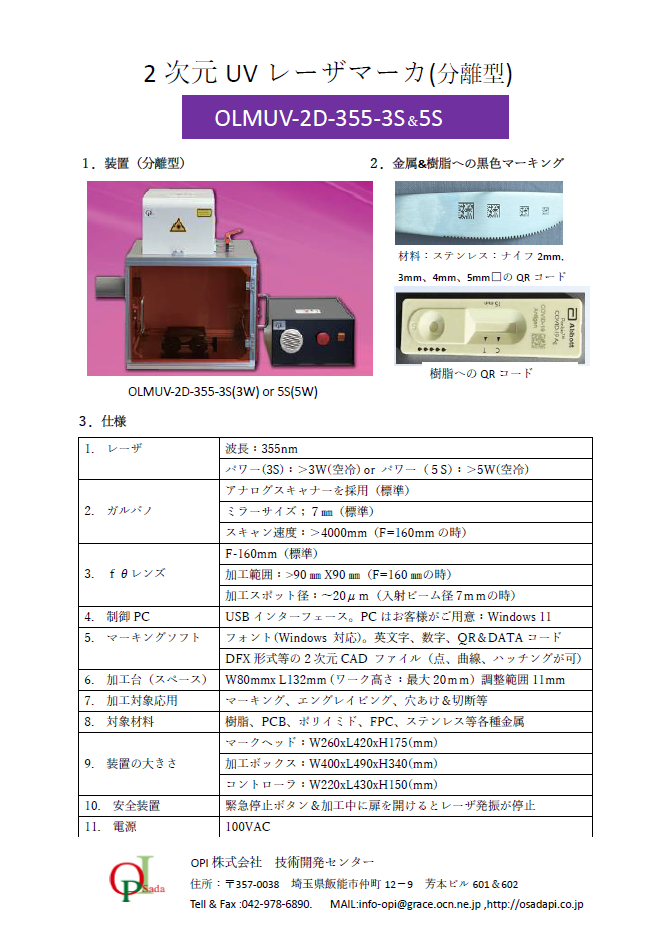 小型UVレーザーマーカ